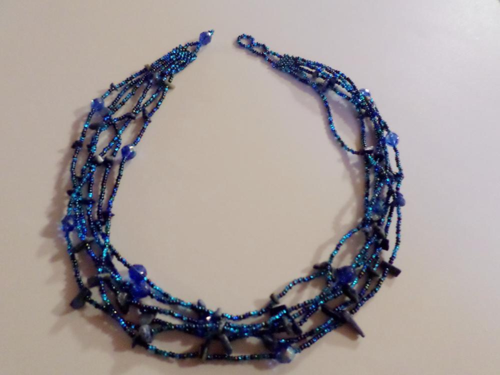 Collier 6 fils, couleur bleue